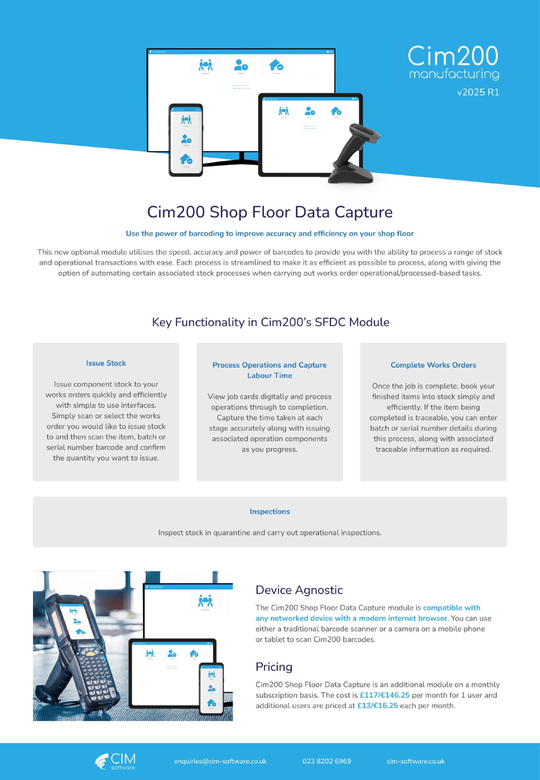 All of the key information on our Cim200 Shop Floor Data Capture module is available to download on one handy document.