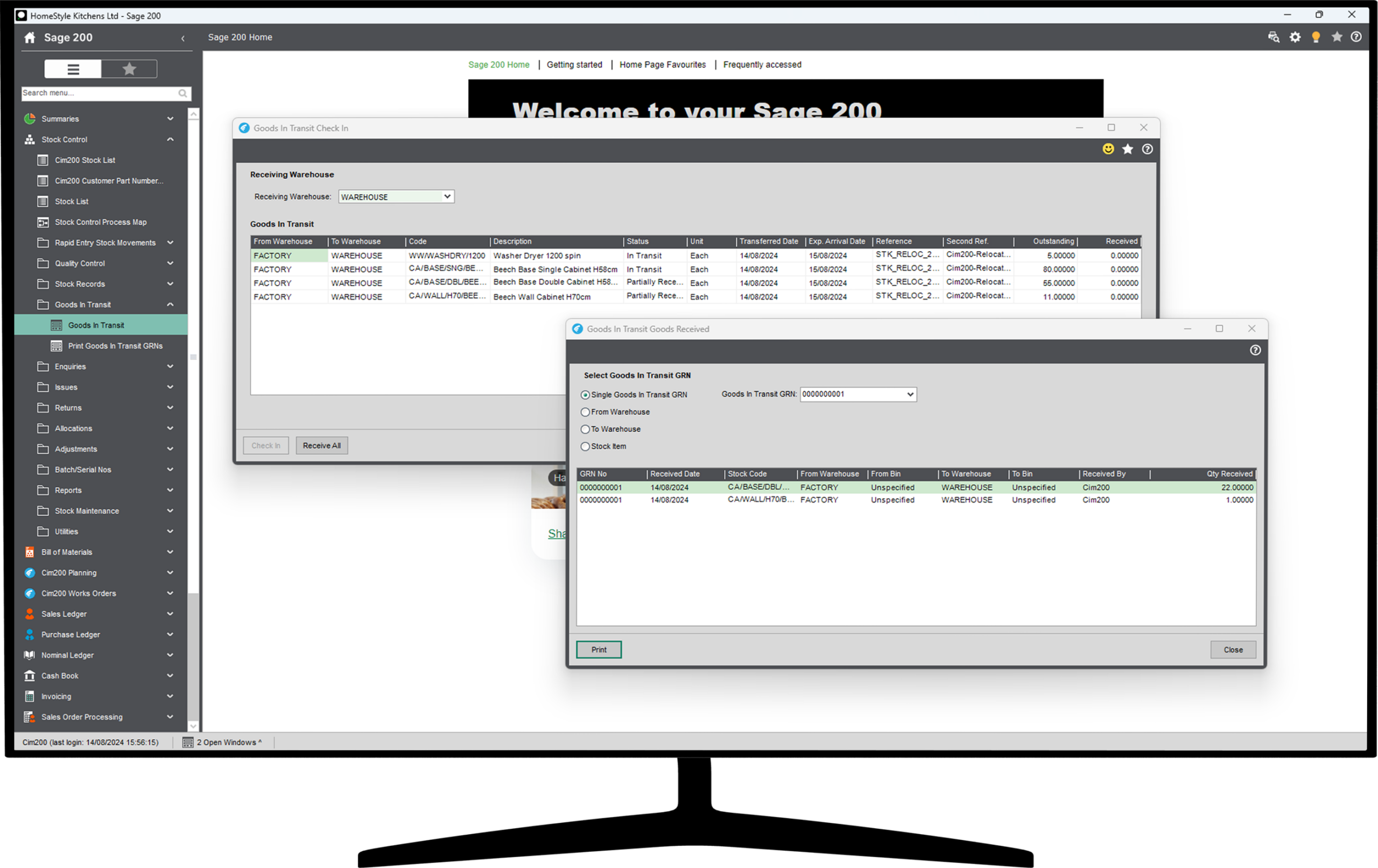 In addition to the Sage 200 Professional Stock Control functionality, Cim200 includes the following enhancements: