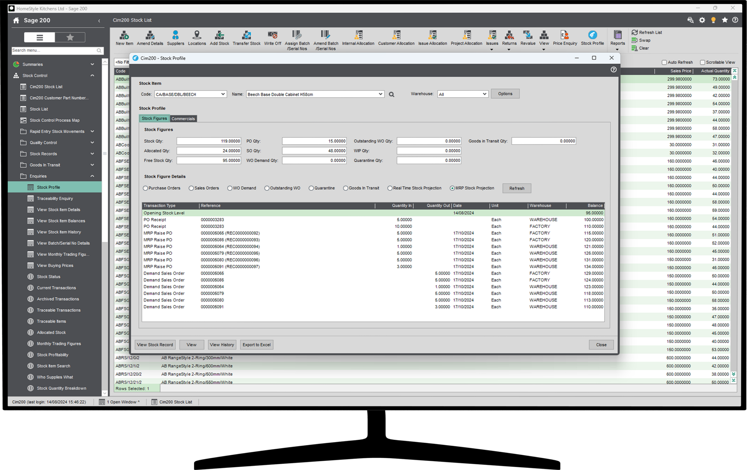 Yes, we’ve extended the standard Sage 200 Stock list to incorporate the additional Cim200 columns and actions, ensuring all the information you want and need is in one place.